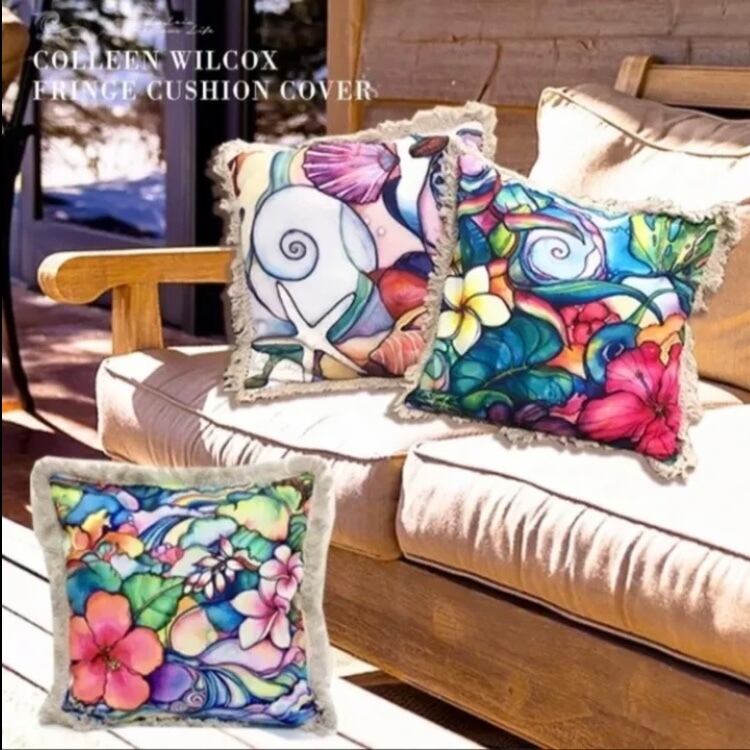 ビーチライクなインテリアにぴったりのColleen Wilcoxのアートクッションカバーです!