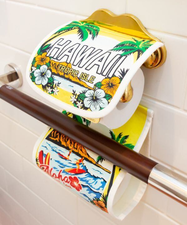 ハワイのビールのラベルをモチーフに描かれた柄のトイレットペーパーホルダーカバーです!